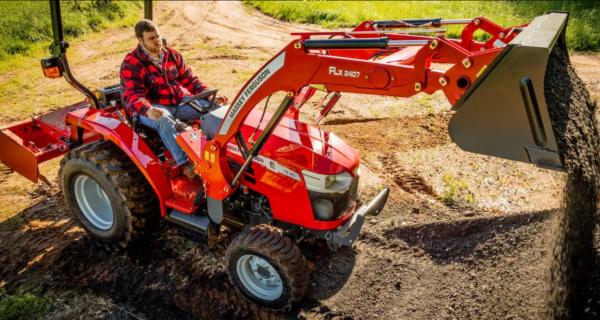 With the ability to equip the MF E Series with Massey Ferguson FLx Series front loaders, this tractor can handle materials of various types with bucket widths up to 72 inches, adding to its utility and versatility.